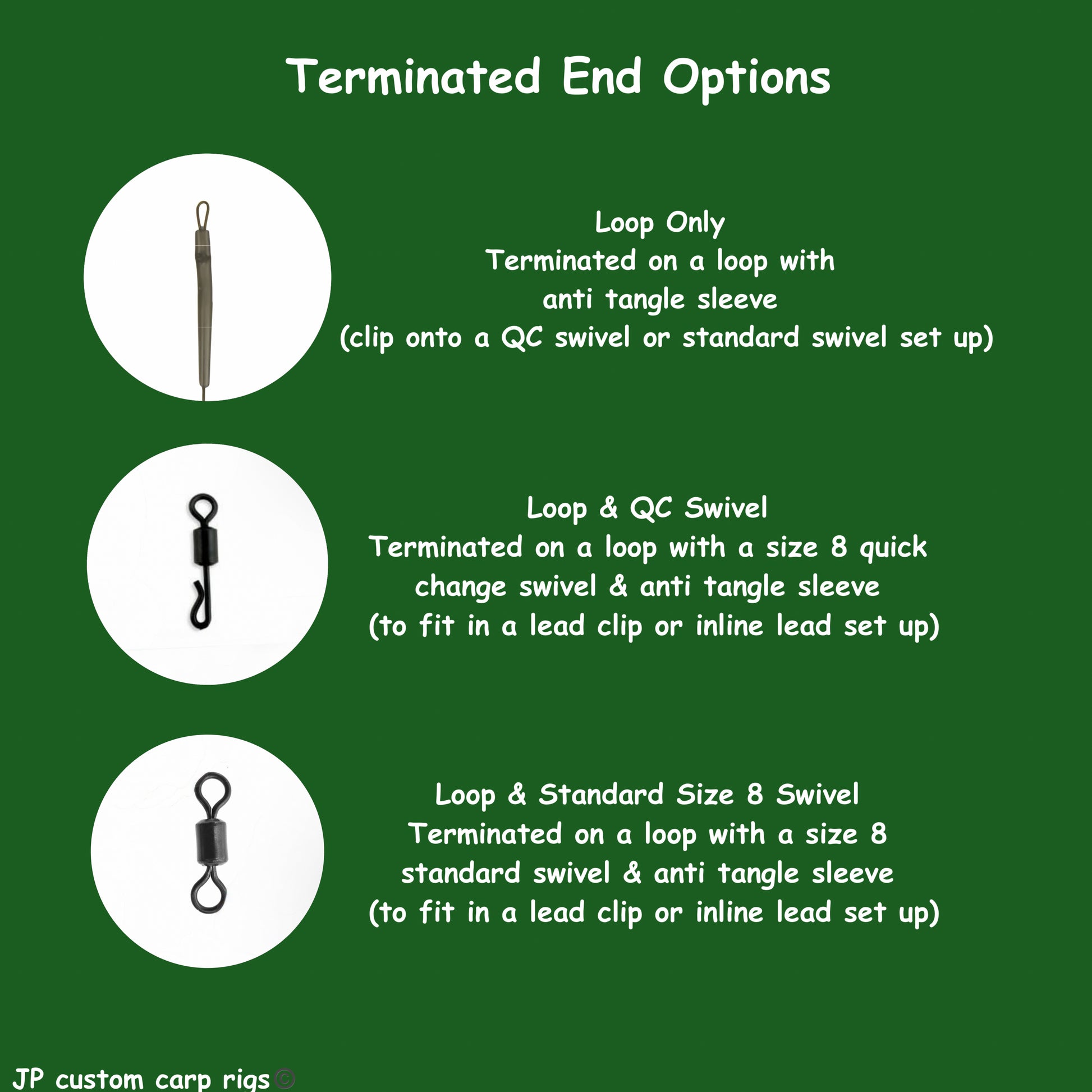 - Loop & Standard Size 8 Swivel - To fit into a lead clip system (Does not include an anti tangle sleeve unless selected)